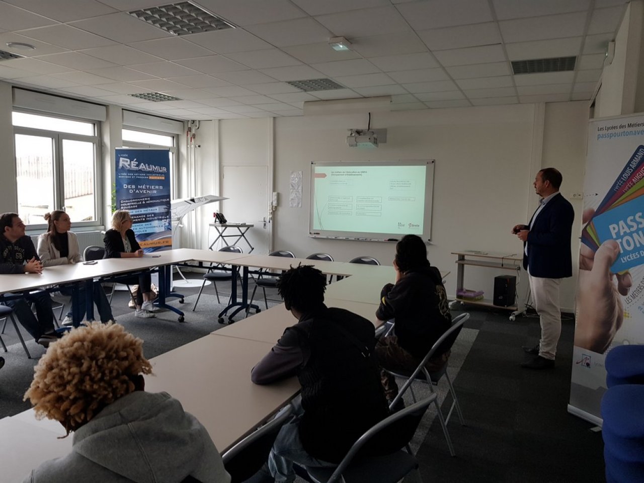 Le 23 septembre dernier, le Lycée Réaumur et le GRETA Poitou-Charentes ont accueilli des conseillers France Travail ainsi qu’un groupe de demandeurs d’emploi pour une présentation des différents métiers présents dans un établissement scolaire et pour une présentation de l’offre de formation spécifique au Lycée Réaumur.
