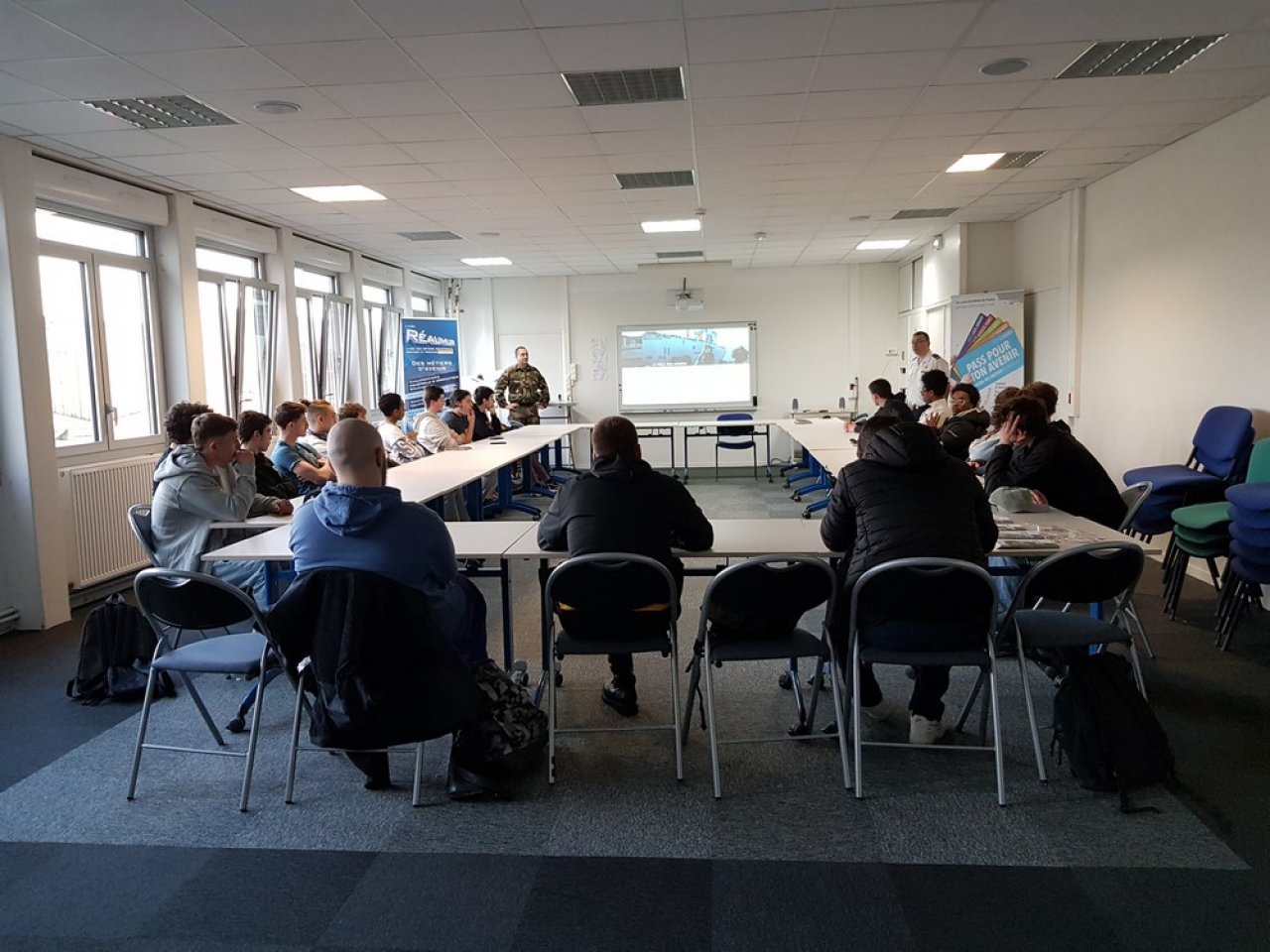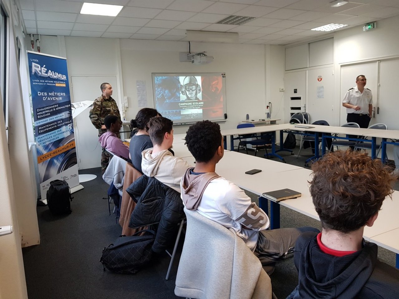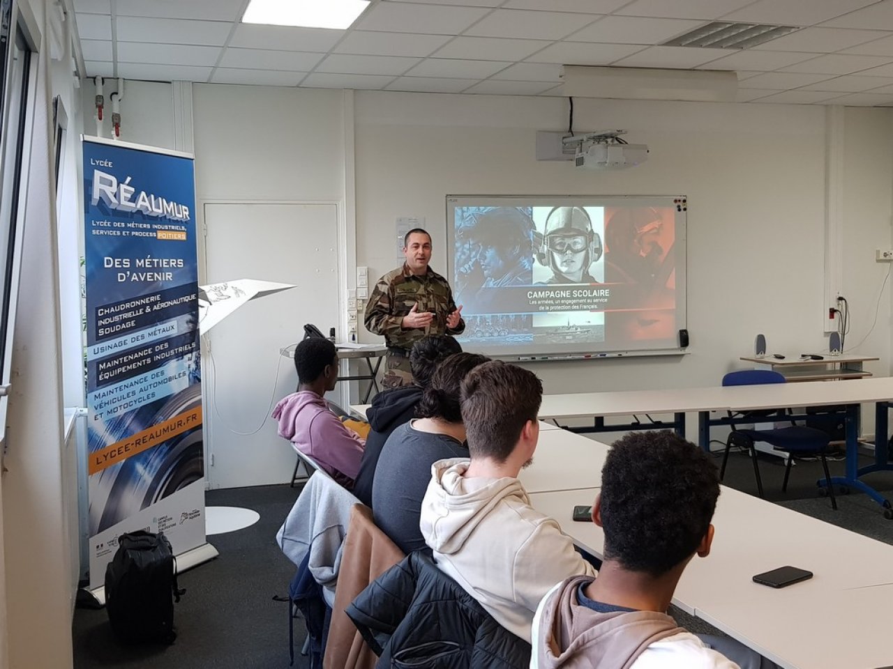 Le 2 avril dernier, des représentants de l’Armée de Terre et de l’Armée de l’Air et de l’Espace ont présenté aux élèves volontaires des classes de terminale CAP et BAC PRO les différents métiers proposés ainsi que les conditions d’exercice associées.