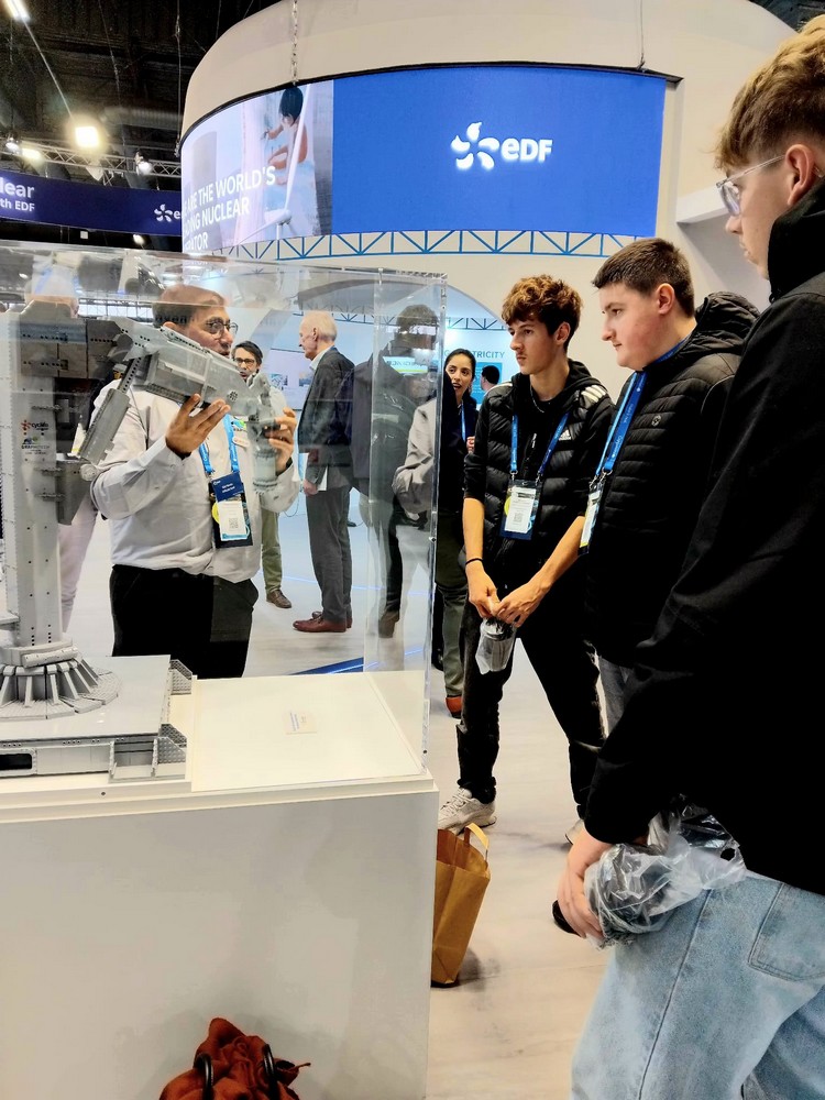 Sur les stands d’entreprises majeures comme EDF, ORANO, FRAMATOME, ou encore de délégations venues des États-Unis, du Royaume-Uni, de France, du Japon, de Corée du Sud, de Chine, d’Allemagne, d’Italie ou encore de Hongrie, nos élèves ont pu échanger avec des professionnels du monde entier.