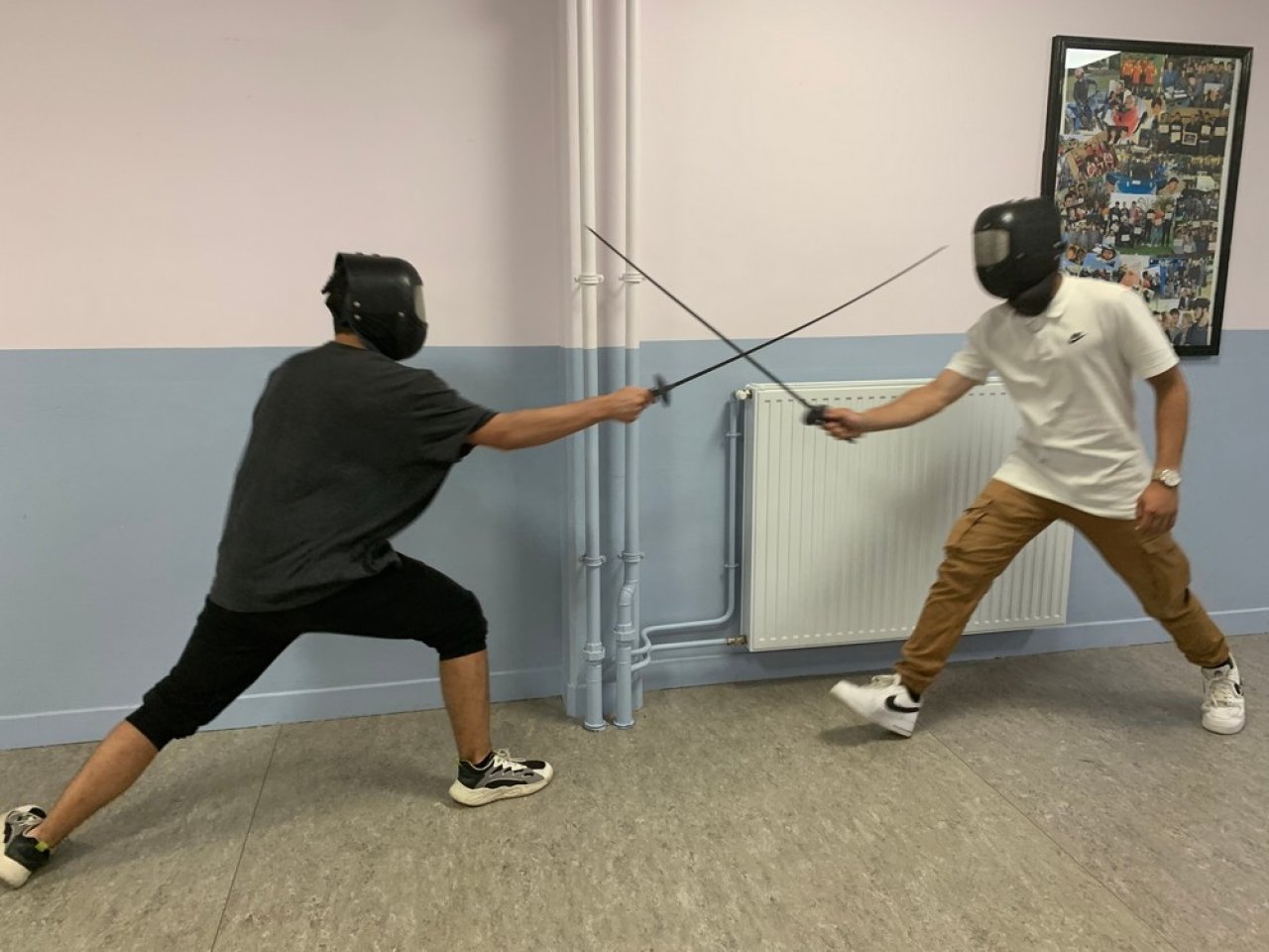 Le mercredi 21 septembre après-midi, une initiation à l’escrime a été proposée à l’initiative de la Vie Scolaire du Lycée. Les internes présents ont pu recevoir les enseignements d’un prévôt d’armes de l’association Escrime Vienne 86, M. Samuel BONNET. Une fois équipés d’un masque et d’un sabre, les élèves ont pu commencer l’entrainement. Ils ont ainsi pu apprendre les postures spécifiques de l’escrime ainsi que le maniement du sabre. Après un entrainement court mais dense, les élèves ont pu s’affronter les uns contre les autres. Dans un premier temps, ils se sont tous rencontrés deux par deux, lors de petits matchs avec comptage du nombre de points et de touches, à l’issue desquels un classement a été établi. Dans un second temps, les participants se sont confrontés dans un tournoi avec élimination directe sur la base de ce classement. Les différents tours (1/4, ½ & finale) ont ainsi permis de désigner un gagnant … Fifonsi COHO, assistant d’éducation qui aidait à faire le nombre et battait en finale, Axel BLANCHARD, le véritable vainqueur côté élève. Pour récompenser ensuite les participants de leurs efforts, un petit goûter leur a été distribué. Les élèves ont beaucoup aimé cette formule et découvrir un sport souvent méconnu du jeune public mais très enrichissant par la maitrise et le respect des règles qu’il requiert. Le lycée adresse donc un grand merci à Monsieur BONNET pour sa venue au Lycée et à Escrime 86.